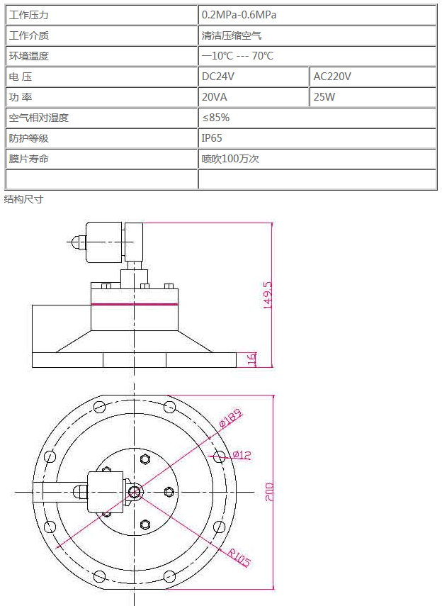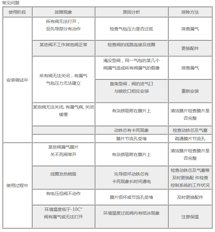 6. 該閥與氣包及噴吹連接管的密封件適用溫度為-10℃~70℃。如需高溫密封件,請訂購時另行注明。