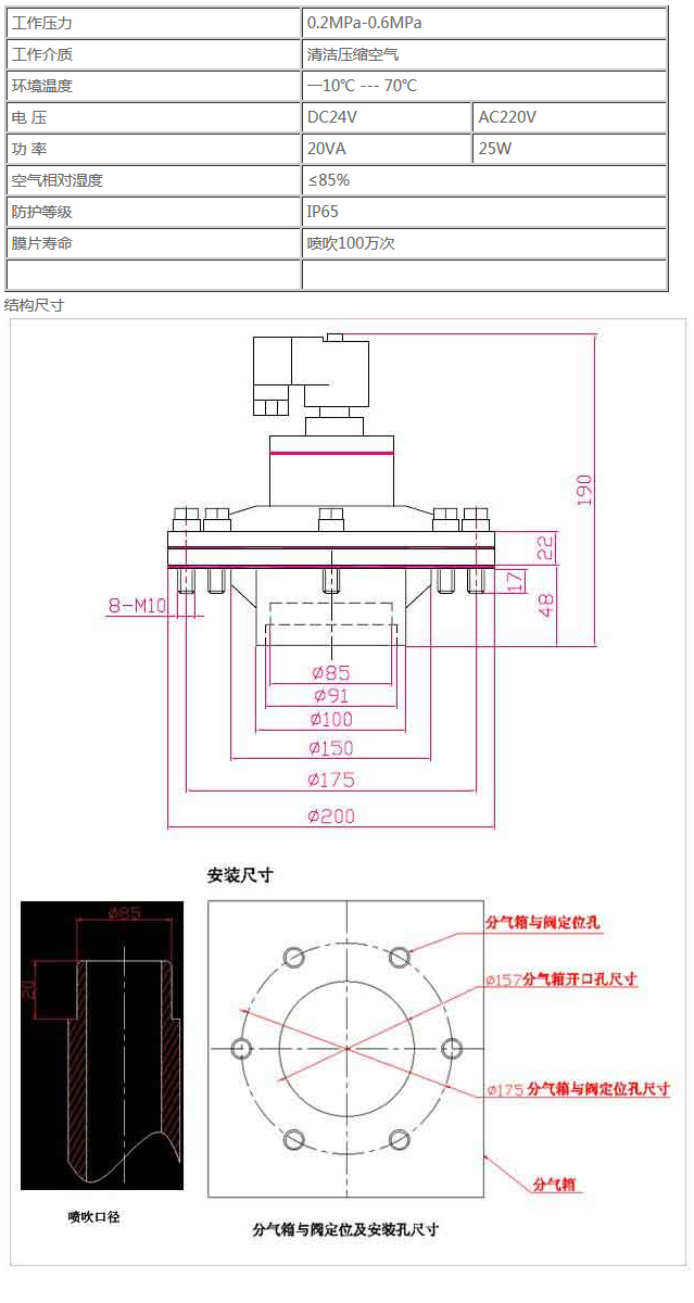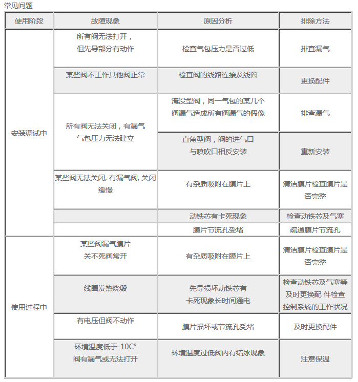 6. 該閥與氣包及噴吹連接管的密封件適用溫度為-10℃~70℃。如需高溫密封件,請(qǐng)訂購時(shí)另行注明。