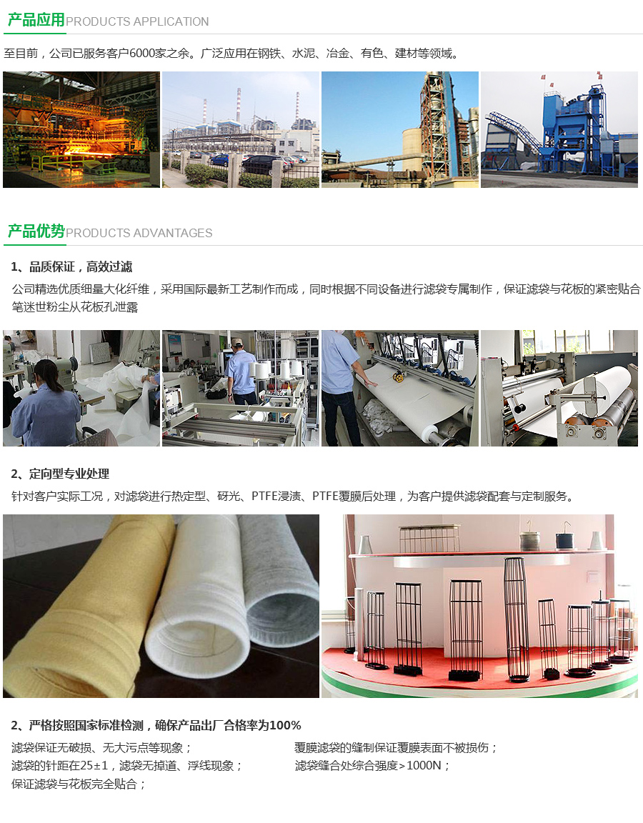 4、該覆膜濾料還具有化學(xué)穩(wěn)定性好、耐熱和耐化學(xué)腐蝕等性能。