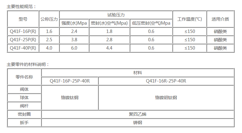 1,銘牌顯示有球閥在最大和最小操作溫度下所允許的最大操作壓力。