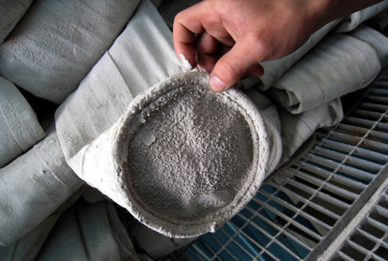 6、更換下來的布袋,先用壓縮空氣吹凈,再檢查有無破洞,有破洞修補好后留待更換。如被粉塵糊住的布袋,用水沖洗,涼干后留待更換。